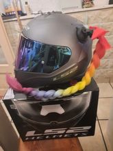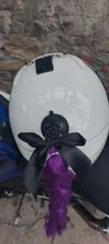 Item conform to the description, delivered quickly with several days in advance. It is easy to apply on the helmet and holds very well. Very satisfied with my purchase, I recommend!